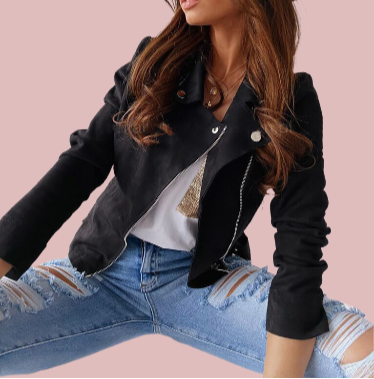 🛍️ ¡Añade un toque de sofisticación a tu armario con nuestra Chaqueta de Ante para Mujer ! ✨👜